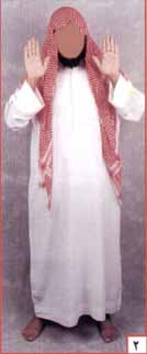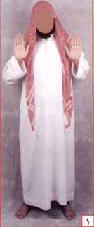 * ثم يقبض كوع يده اليسرى بيده اليمنى ويضعهما على صدره [ أنظر صورة 3 ].