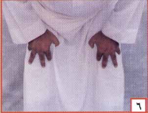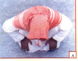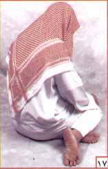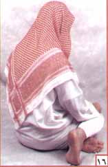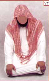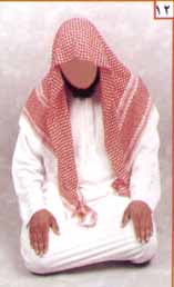 * ويضع يديه في هذه الجلسة على فخذيه ، وأطراف أصابعه عند ركبتيه ، [ أنظر صورة 12 ].